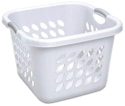 The Sterilite 12178006 1.50-Bushel Ultra Square Laundry Basket set comes in six pieces. The laundry baskets feature heavy-duty construction including thick reinforced rim and reach-through handles. Smooth sidewalls create a no snag inner surface, and color accented inserts provide a comfortable grip surface for transporting heavy loads of laundry.